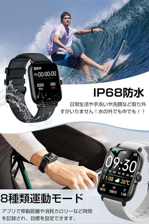 【1.7インチ大画面&洗練されたデザイン】 スマートウォッチ は、1.7インチの高解像度タッチスクリーンを採用し、より広く、より鮮明な表示を実現。操作性も高く、画面の切り替えや通知の確認がスムーズに行えます。Smart Watch クラシックからポップまで多種類の文字盤が搭載され、日常の気分やシーンに合わせて自由に変更可能。活動量計 シンプルかつモダンな外観は、男女問わず様々なスタイルにマッチし、ビジネスからカジュアルまで幅広く活躍します。