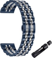 Hinnwer 22mm 金属バンド Amazfit Bip 6/5/Balance/Huawei Watch GT 5 Pro/GT 5/5/4 46mm 対応 スマートウォッチ 交換 ベルト ステンレス製 Garmin Venu 3 45mm/Venu 2/Forerunner 570 47mm/265/255/Xiaomi Watch S4/5 Active 用 - ブルー&シルバー a
