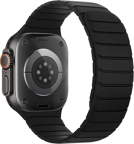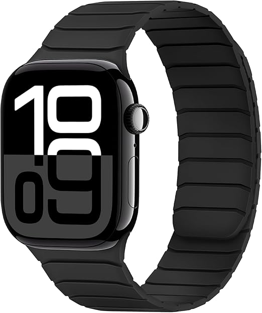 磁気 コンパチブル Apple Watch バンド 42mm(Series 10) 41mm 40mm 38mm ソフトシリコン交換用ループリストバンド ンパチブル アップルウォッチ バンド SE Series10/9/8/7/6/5/4/3/2/1に対応 柔らかい 男女兼用,ブラック a