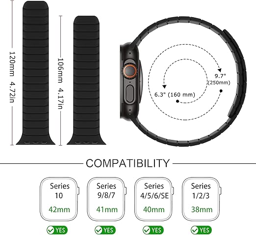 【対応モデルとサイズ】Tasikar 磁気シリコンバンド Apple Watch シリーズ 10 42mm(2024)、シリーズ 9 (2023) シリーズ 8 (2022) シリーズ 7 (2021) 41mm、SE (2022) シリーズ 6 (2020) SE (2020) シリーズ 5 (2019) シリーズ 4 40mm、シリーズ 3 シリーズ 2 シリーズ 1 38mm 全モデルに対応。
