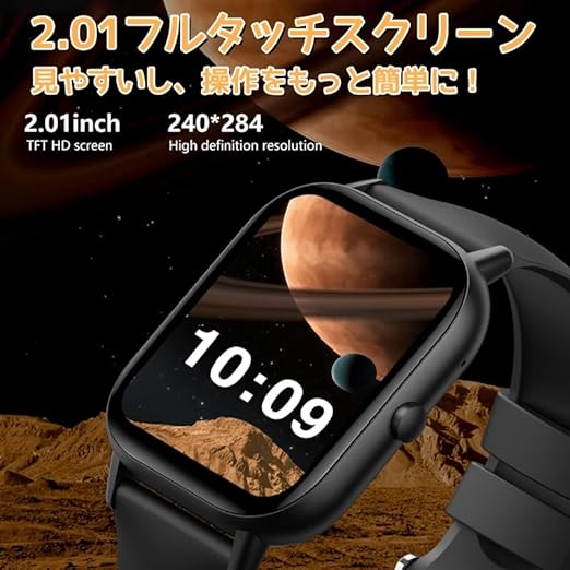 【業界2.01インチ大画面スマートウォッチ・着信/アプリ通知】2.01インチ超大画面カラースクリーンを搭載されし、高解像度の大画面を採用され、画質がより鮮明になり、より高精度な大画面で文字を表示されます。上下左右のスライド操作で機能の切替も簡単です。スマホとペアリングし、電話、メール、Line、SMS、Twitterなどのソフト情報はバイブレーションでお知らせします。一切の大事な連絡を見逃しません。また、メッセージの内容や相手の名前、対応するアプリのアイコンも表示されます。