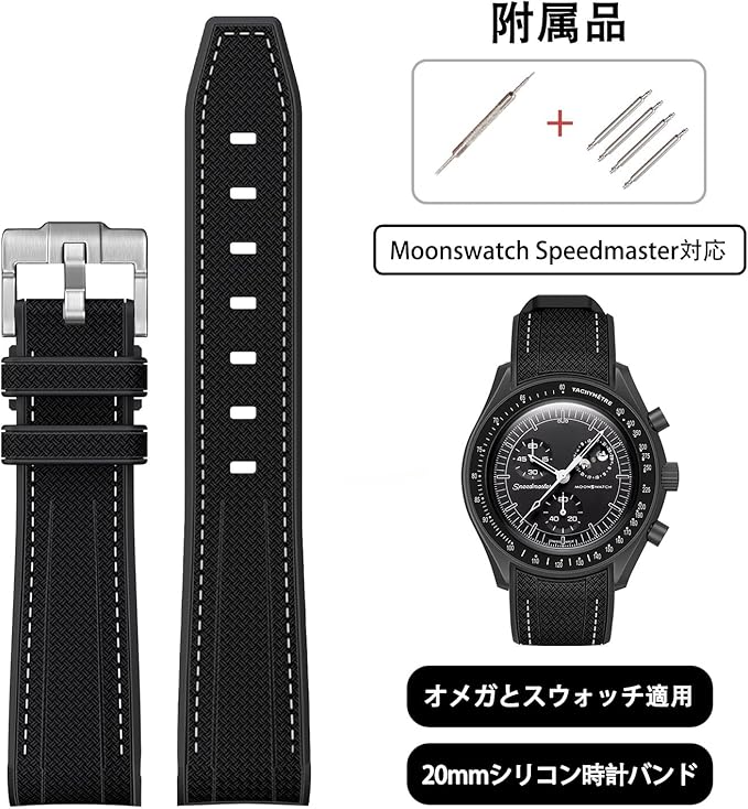 [Jumpsunfun] 20mm 時計バンド for Omega X Swatch Speedmaster MoonSwatch オメガとスウォッチ用シリコンベルト Quick Release 交換工具付き