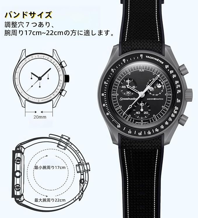 [Jumpsunfun] 20mm 時計バンド for Omega X Swatch Speedmaster MoonSwatch オメガとスウォッチ用シリコンベルト Quick Release 交換工具付き a