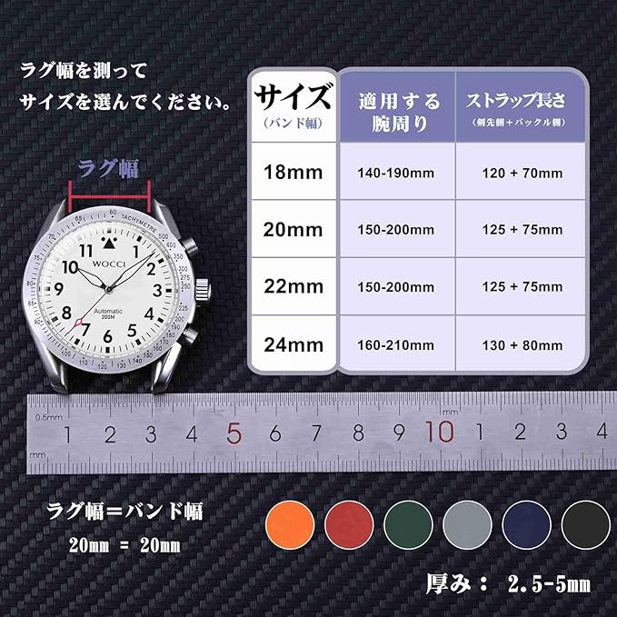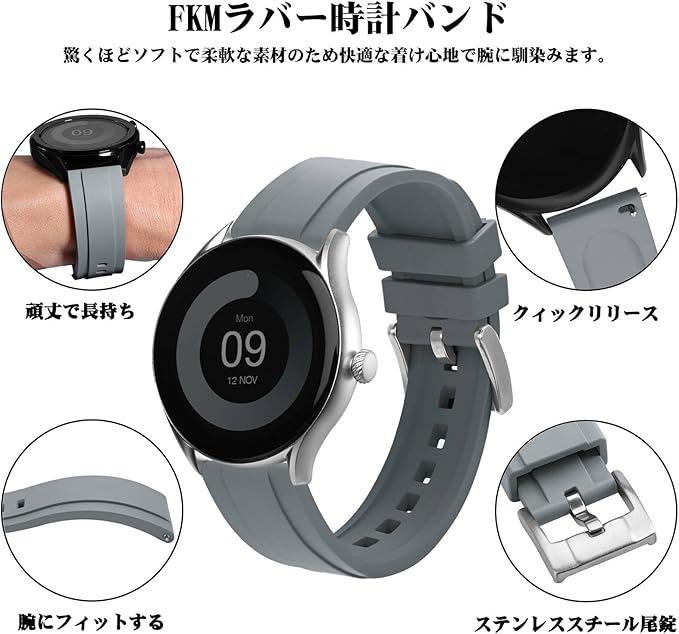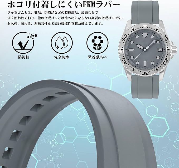[WOCCI]フッ素ゴム腕時計バンド18mm 20mm 22mm 24mm シリコン時計ベルト 高級腕時計ラバーベルト Quick Release