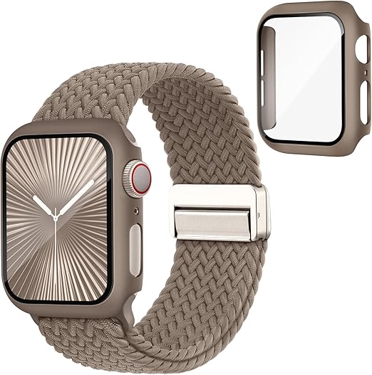 コンパチブル Apple Watch バンド ナイロン 編み込み 伸縮性 アップルウォッチ バンド マグネット 磁気 保護カバー付き互換用のApple Watch ベルトとケース 一体型 耐衝撃 全面保護 Series 10 9 8 7 6 5 4 3 2 SEの40mm 41mm 42mm 44mm 45mm 46mm に対応 a