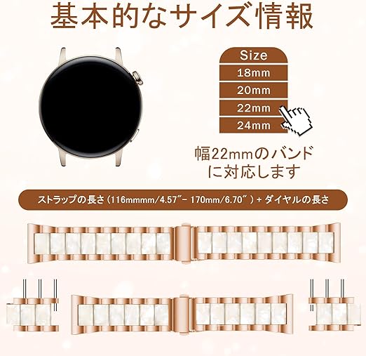 [CeiBand] 22mm 20mm バンド 交換バンド 22ミリ 20ミリ スマートウォッチ 交換ベルト 樹脂+合金ステンレス 替えベルト クイックリリース ストラップ 調整ツール付き 調節可能 普通時計 (22 mm 薄ピンク) a