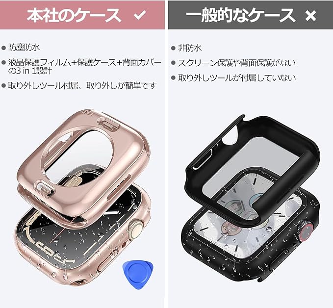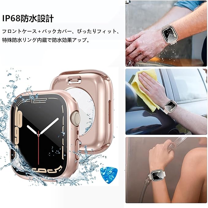 【360ど度 防水設計】:アップルウォッチ ケースの防水機能は全面的にアップグレードされました。新型保護ケースでは、スクリーンの強化ガラスフィルムの下部に防水ソフトラバーシーリングリングが内蔵されており、水がガラスフィルムと本体の間に入るのを効果的に防ぎ、日常使用中に水に触れることで生じる画面タップ問題を回避し、日常のスポーツや水上活動に最適です。