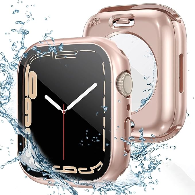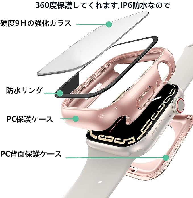 【360度防水設計】AIYYXX For アップルウォッチ カバー Series 10/9/8/SE2/SE/7/6/5/4 41mm ガラスフィルム+PCフレーム 一体型 2 in 1 前後の保護 IP68 防水 apple watch カバー 対応 高透過率 キズ防止 指紋防止 簡単に取り付け・取 全面保護 アップルウォッチ ケース(Series 9/8/7,41mm,ローズゴールド) a