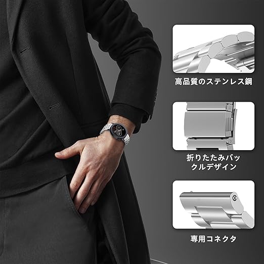 [プレミアム素材] 私たちの腕時計のバンドは、厳選されたステンレススチール素材で作られています。その耐久性と優れた品質は、長期間の使用にも耐え、色あせや錆びの心配なく、長く美しい状態を保ちます。