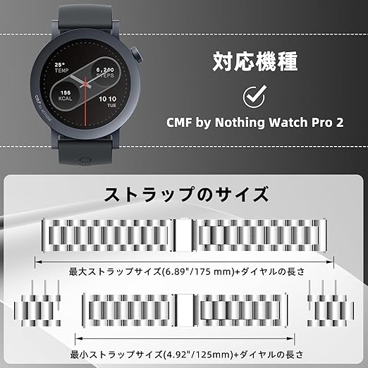 [対応機種] ToVioc ステンレスバンドはCMF by Nothing Watch 3 Pro / CMF by Nothing Watch Pro 2とのみ互換性があります。(注:ご購入前に時計のモデルをご確認ください。スマートウォッチは含まれません。)