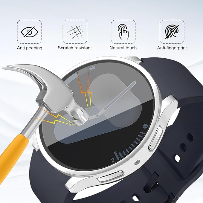 【覗き見防止】コンパチブル Samsung Galaxy watch 7/6/5/4/FE カバー 40mm 44mm コンパチブル ギャラクシーウォッチ 7 ケース 40mm 44mm コンパチブル Galaxyウォッチ 7 カバー 40mm 44mm、 pc 保護ケース 強化ガラス 一体型 耐衝撃 タッチ感度が良い 高透過率 指紋防止 傷防止 高感度 a