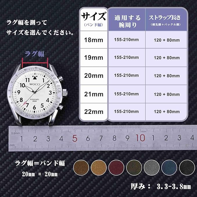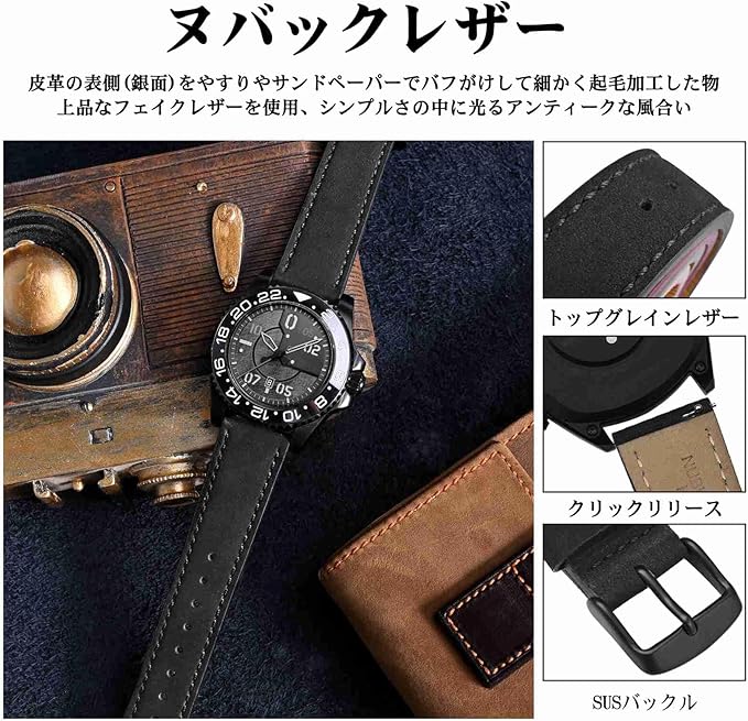 [WOCCI] Quick Release革時計ベルト 18mm 19mm 20mm 21mm 22mm ヌバック腕時計バンド a
