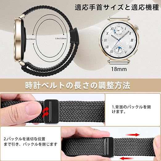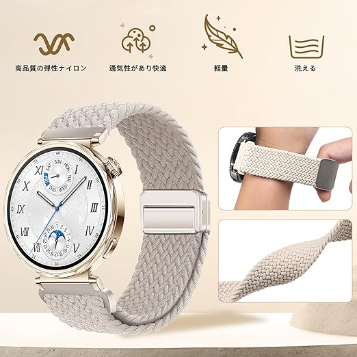 [YealRed] バンド 18mm For Huawei Watch 5 42mm/GT 5 Pro 42mm /GT 5 41mm交換用ストラップ 弾性ナイロン製 替えベルト 編組ストラップ 磁気バックル 換え ベルト マグネットバンド コンパチブルHuawei Watch GT 4 41mm(スターライト) a