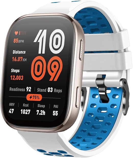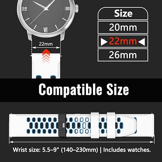 [RosMank] 22mm バンド Amazfit Balance 2/Bip 6/Bip 5/GTR 4/GTR 3 対応、ガーミン Amazfit Cheetah/Stratos 3 2s 用ソフト 2色シリコン交換用ストラップ 白青 a
