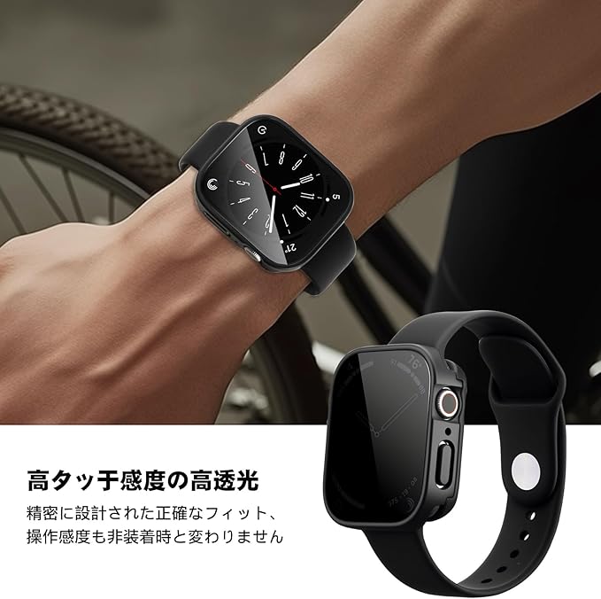 【360°全面保護&覗き見防止】:このアップルウォッチ カバーの液晶保護フィルムは硬度9Hの強化ガラスを採用し、Apple Watch カバーのフレームはPC(ポリカーボネート)素材で構成されており、耐傷性、耐衝撃性に優れ、アップルウォッチへの落下や傷など不測の事態の損傷を最小限に抑えてます。ぞき見防
