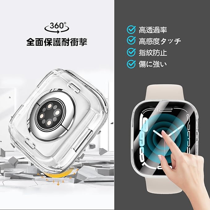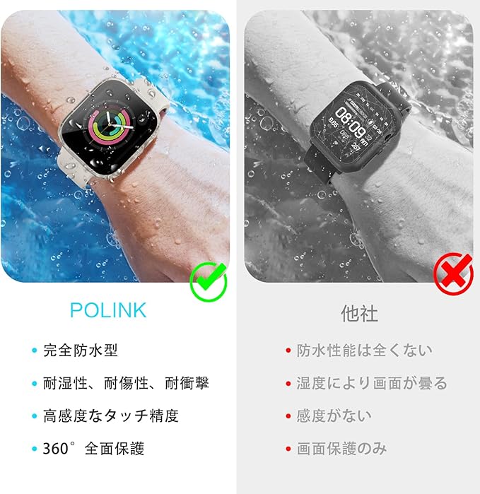【防水・防塵ケース】シーリングリング内蔵したアッApple Watch ケース、アップルウォッチの画面にぴったりとフィットし、アップルウォッチ前面カバーと背面カバーの2 in 1全周保護設計で,表面から裏面まで 360度の全面保護します、IP67防水、防塵設計。ケースを取り外して水を拭