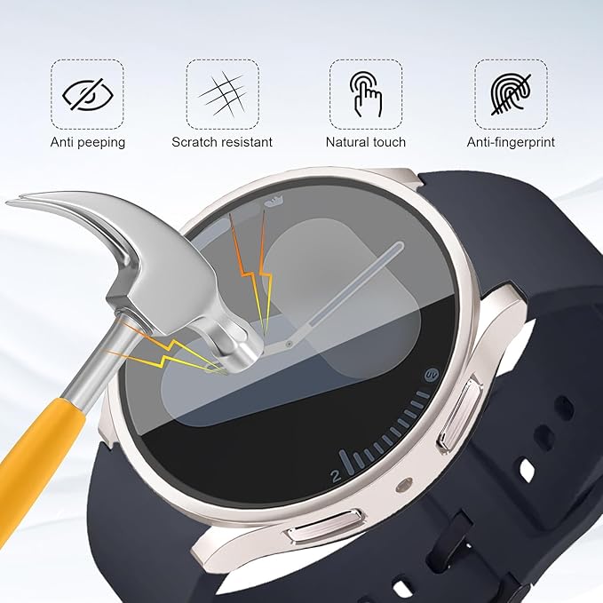 【覗き見防止】コンパチブル Samsung Galaxy watch 7/6/5/4/FE カバー 40mm 44mm コンパチブル ギャラクシーウォッチ 7 ケース 40mm 44mm コンパチブル Galaxyウォッチ 7 カバー 40mm 44mm、 pc 保護ケース 強化ガラス 一体型 耐衝撃 タッチ感度が良い 高透過率 指紋防止 傷防止 高感度 b