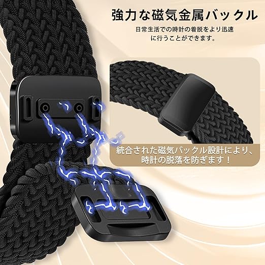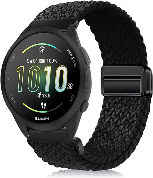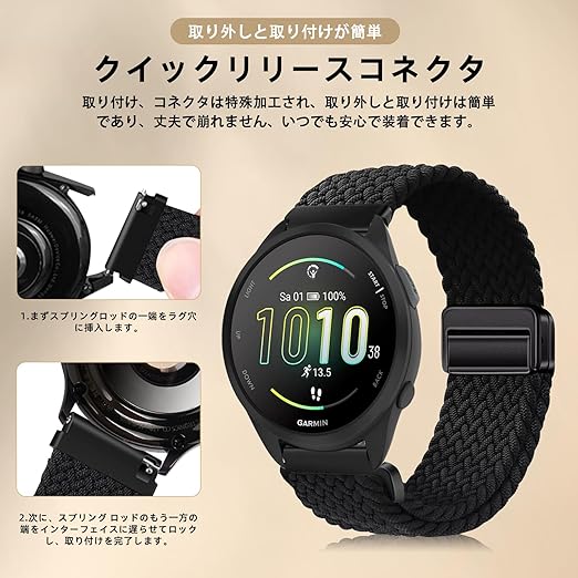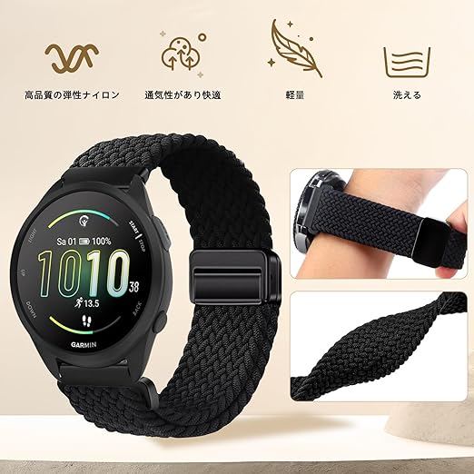 [YealRed] バンド 20mm For Garmin Forerunner 570 42mm/Vivoactive 6 / 5 交換用ストラップ 弾性ナイロン製 替えベルト 編組ストラップ 磁気バックル 換えベルト マグネットバンド コンパチブルGarmin Forerunner 165 / 165 Music/ 245 / 245 Music(ブラック) a