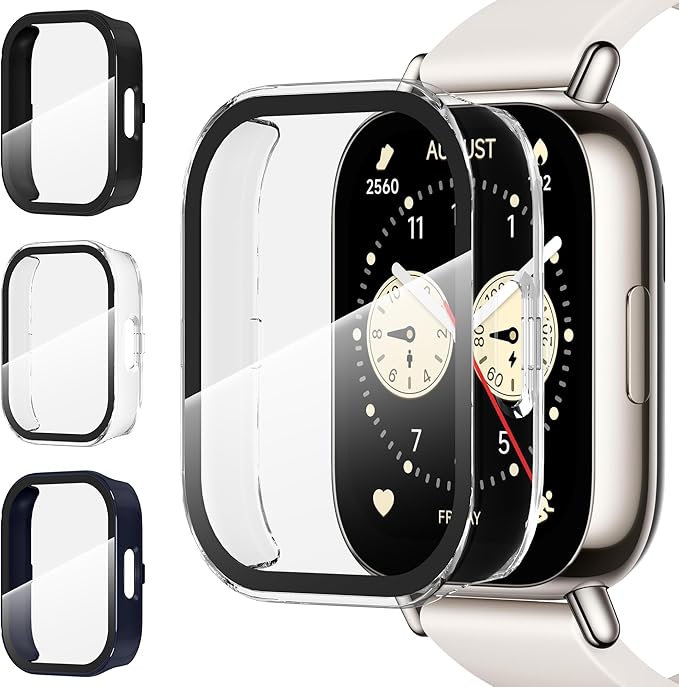 Suoman for Xiaomi Redmi Watch 5 Lite ケース(3個)シャオミスマートウォッチケースfor Redmi Watch 5 Lite カバー-ブラック+透明+青 a