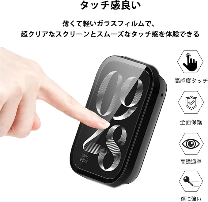 【高品質素材】Xiaomi Smart Band 8 Pro ケースは日本製旭硝子フィルムと艶消し黒いのバンパーを採用しています、スマートウォッチ本来の美しさをそのままに保つことが可能です。