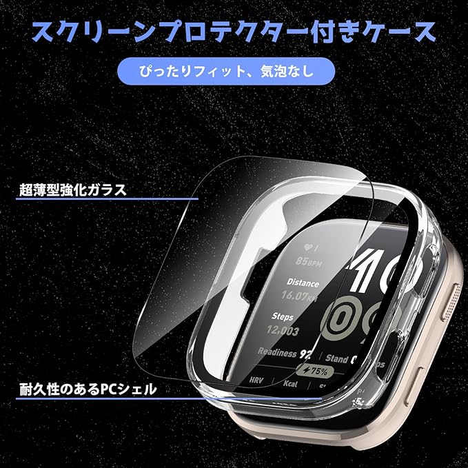 [全面保護] この保護ケースは一体型フルカバータイプの保護ケースとなっていますので、カバーのフレームはPC(ポリカーボネート)素材で構成されます、液晶部に硬度9Hの強化ガラスを採用しました。耐傷性、耐衝撃性に優れ、Amazfit Bip 6本体の液晶画面への傷や衝撃を緩和し、大切な時計をしっかりと保護します、Amazfit Bip 6すべての側面を完全に覆い保護します。