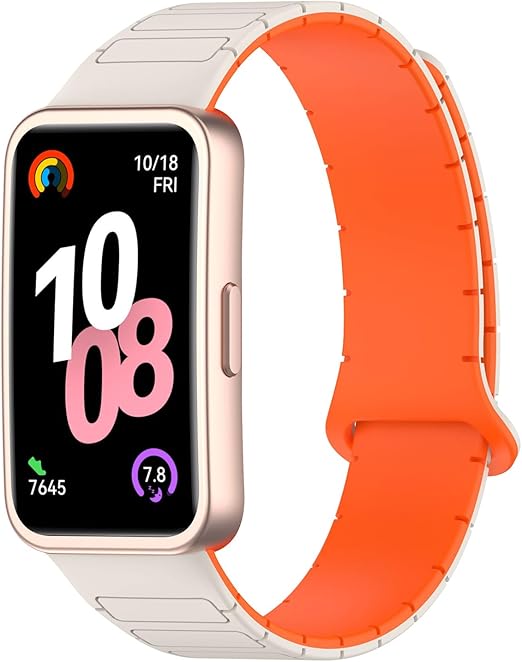 [KONXISA] 交換バンド HUAWEI Band 10 / 9 / 8 対応 バンド 磁気付き柔らかいシリコンベルト 長さ調節 軽量、快適、耐久性、防水性 防汗 男女兼用 スタイリッシュ 腕時計ベルト(スターライトカラー&オレンジ) a