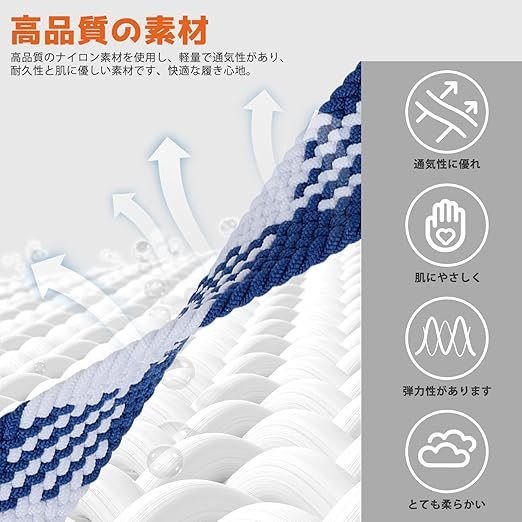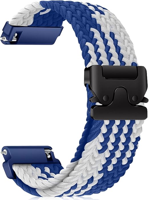 [RoSoki] バンド 18mm 20mm 22mm 対応 ナイロン 交換用バンド ブレイデッド Huawei、Xiaomi、Samsung、Amazfit 、Garmin、Ticwatch 用 編組 パラシュートバックル 交換ベルト スポーツ ストラップ 替えストラップ 伸縮性 軽量 柔軟性 速乾性 水洗可能 頑丈 装着簡単 調整しやすい 男女兼用 (ブルーホワイト - 18mm) a