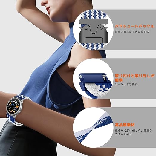 [18mm対応機種] ナイロン 編組 素材のブレイデッドバンドです Huawei Watch 5 42mm / Huawei Watch GT 5 Pro 42mm / Huawei Watch GT 5 41mm / Huawei Watch GT 4 41mm / Garmin Venu 3S 41mm / Garmin Forerunner 265S / Garmin Forerunner 255S / Garmin Forerunner 255S Music / Garmin Vivoa