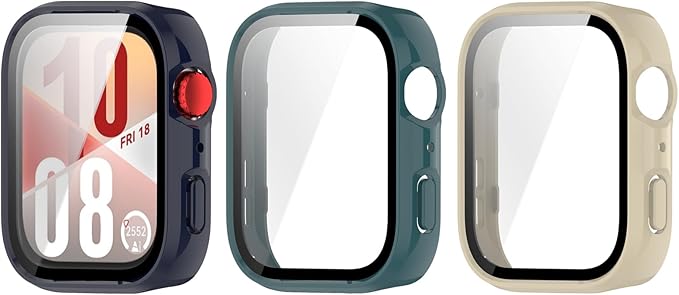 RuenTech 対応Huawei Watch Fit 4 ケース, 対応huawei watch fit4 保護カバー ガラスフィルム PC素材全面保護 硬度9H 強化ガラス 高透過率 一体型 (3色C) a