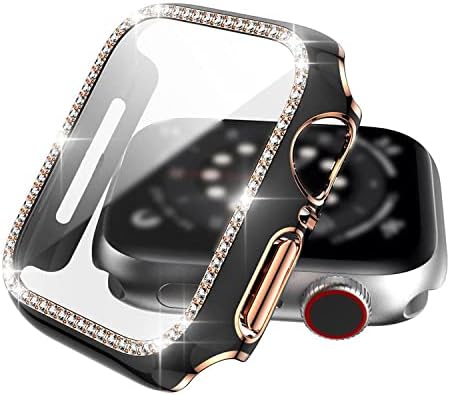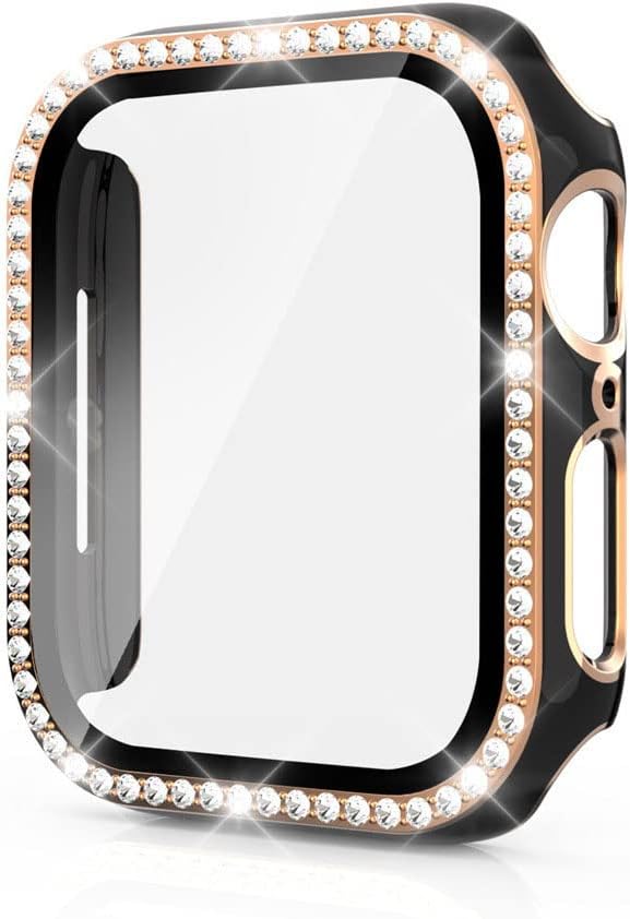 スマートウォッチ保護ケース・Apple Watch Series 9/8/7用 ケース ガラスフィルム ケース カバー かわいい ラインストーン きらきら 液晶カバー アップルウォッチ シリーズ7 41mm用 ハードケース 保護ケース フィルム一体 装着簡単[41mm(ブラック)] a