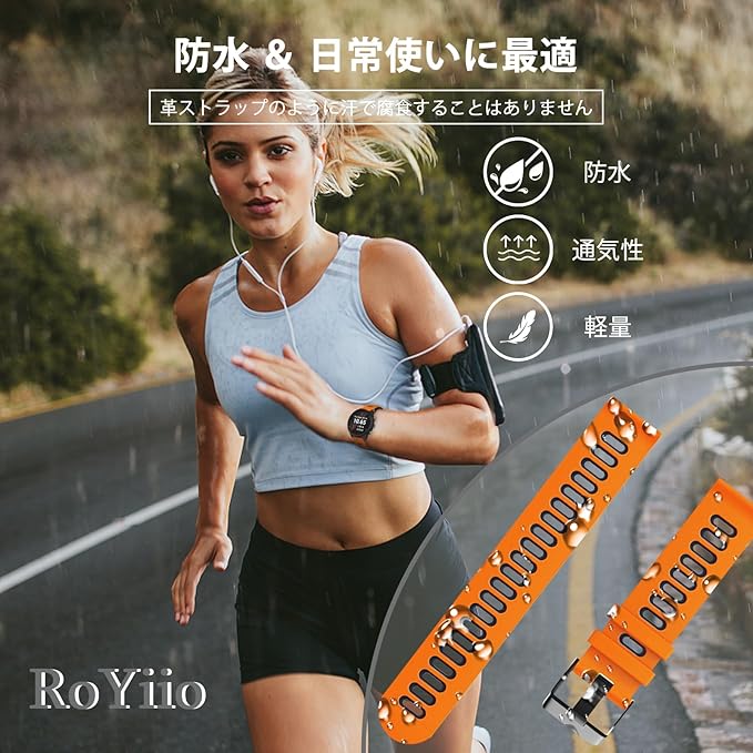 [RoYiio] 時計バンド 20mm 22mm 交換用ベルト シリコーンウォッチバンド 柔らかい 軽量 防汗 通気性 快適な スポーツ 替えバンド 男性女性兼用