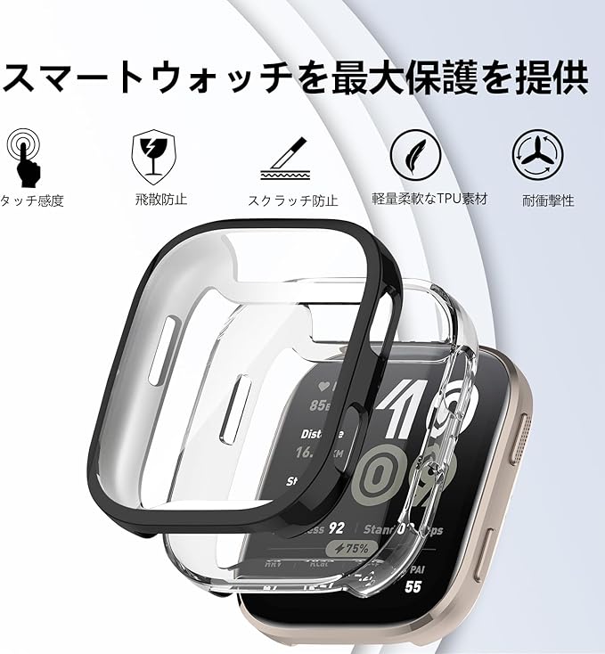 【高級な材質】高品質で柔軟なTPUで作られたケースは、スマートウォッチのエッジとスクリーンを全面カバーして、擦り、ドロップ、バンプを防ぎ、全面保護できます。柔らしい素材で、肌になじみやすく、肌を傷つけません。本体に最大な保護を与えます。