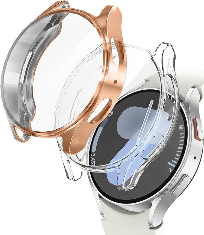 WUWOCJ【2個】TPUケース 対応 Samsung Galaxy Watch 7 40mm/44mm 全面保護 耐衝撃 超薄型 軽量 保護ケースカバー (ローズゴールド/透明, 40mm) a