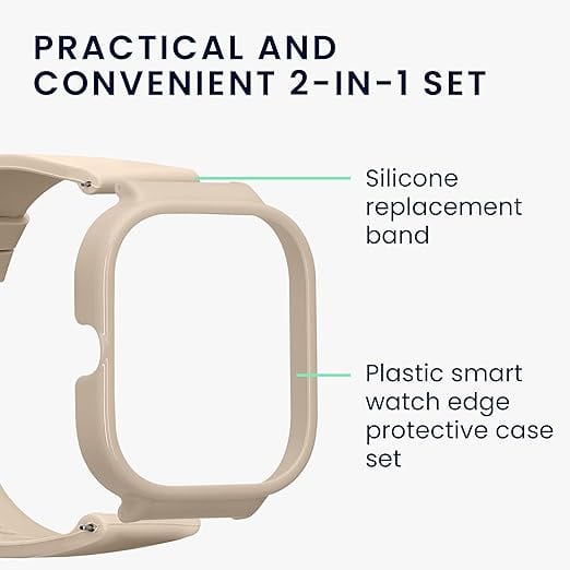 kwmobile 交換ベルトXiaomi Redmi Watch 4対応 バンド - 2in1セット シリコンバンド カバー ソフト ベージュ a