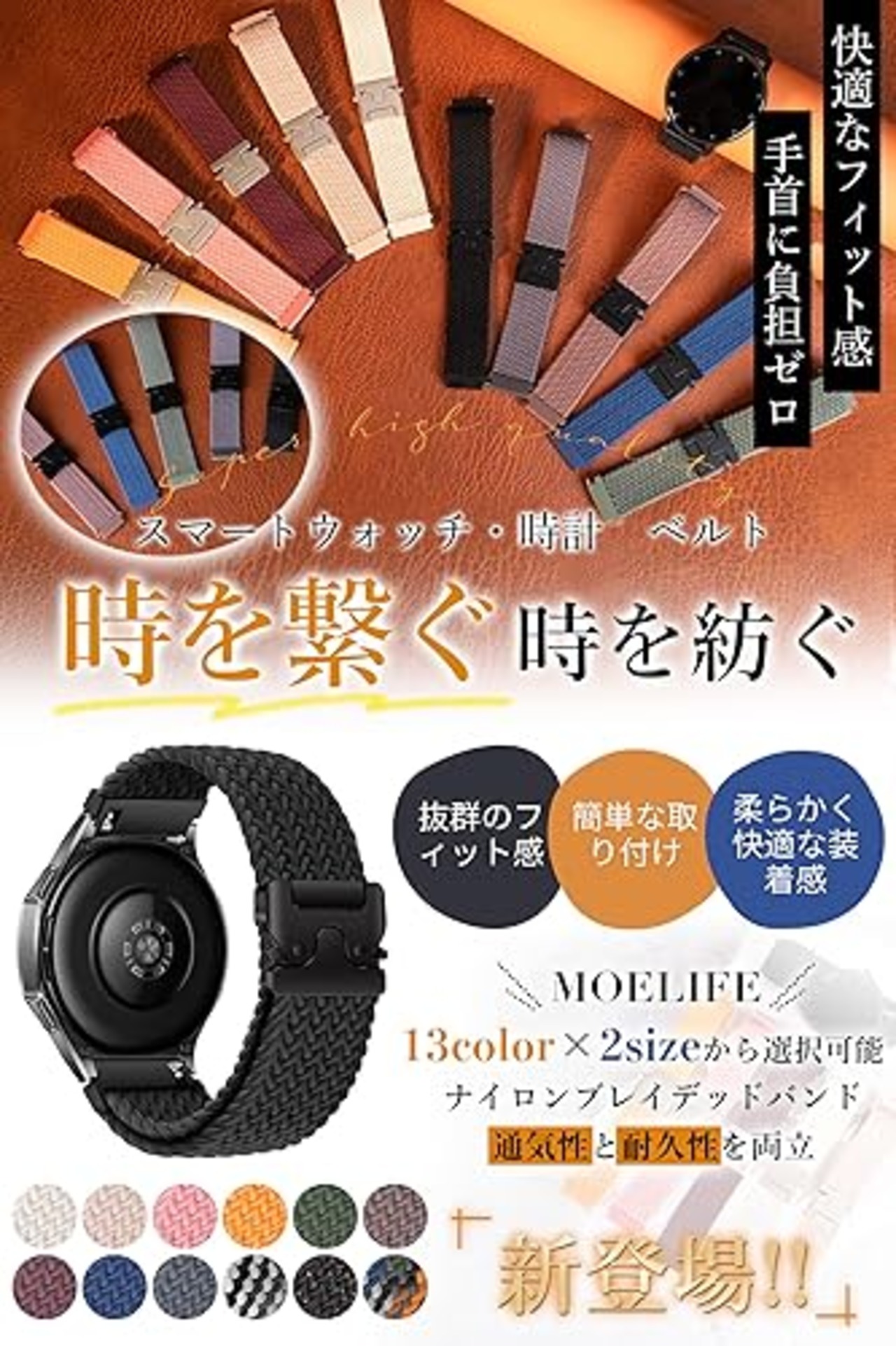 [モエライフ] スマートウォッチ 時計 ベルト 【20mm/22mm・13カラー展開・パラシュートスタイルバックル】 スマートウォッチ バンド 腕時計 ベルト ナイロン 交換バンド 無段階調整 金属バックル メンズ レディース 兼用 通気性 弾力性 伸縮性 柔軟性 向上