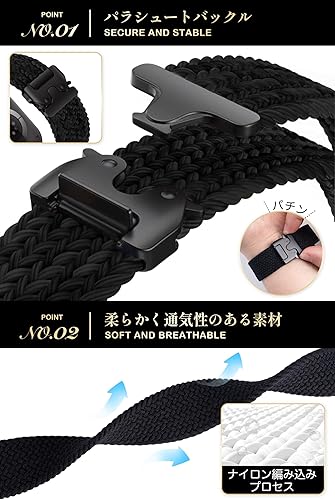 [モエライフ] スマートウォッチ 時計 ベルト 【20mm/22mm・13カラー展開・パラシュートスタイルバックル】 スマートウォッチ バンド 腕時計 ベルト ナイロン 交換バンド 無段階調整 金属バックル メンズ レディース 兼用 通気性 弾力性 伸縮性 柔軟性 向上 c