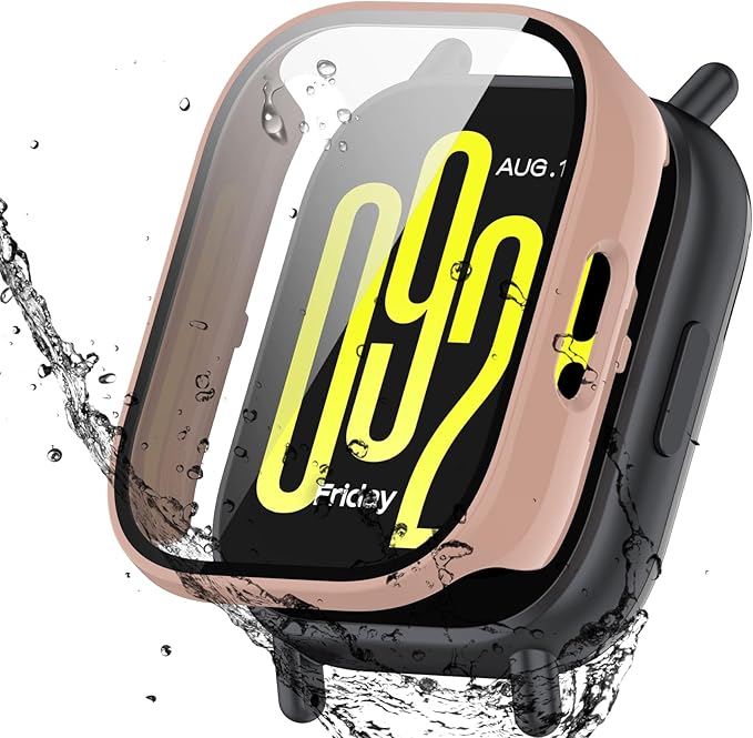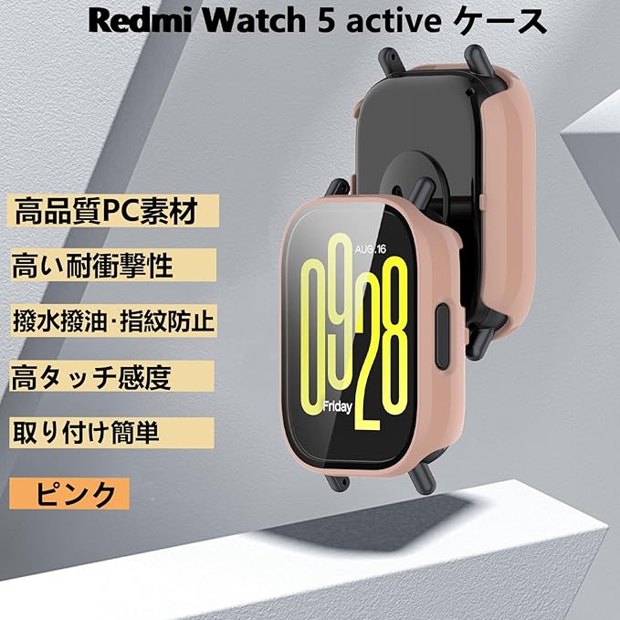 AIYYXX For Redmi Watch 5 active ケース 3D直角エッジ 超薄型 PC+ガラス素材 一体型 シャオミ(xiaomi) redmi watch 5 active ケース 対応 高透過率 キズ防止 指紋防止 簡単に取り付け・取 全面保護 カバー (ピンク) a