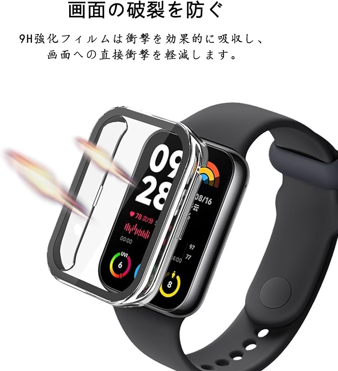 【全面保護カバー】高透明度の日本製ガラスと約1.3mmの薄さ、わずか2.13gの軽量なPC枠を採用。これにより、外部の衝撃から大切な[シャオミ] スマートウォッチ Band 9 Pro を守ります。硬度9Hの強靭な液晶部保護フィルムも備えています。さらに、透明度の高い液晶ガラス素材を使用しており、本来の明るくカラフルな画質を保ちます。