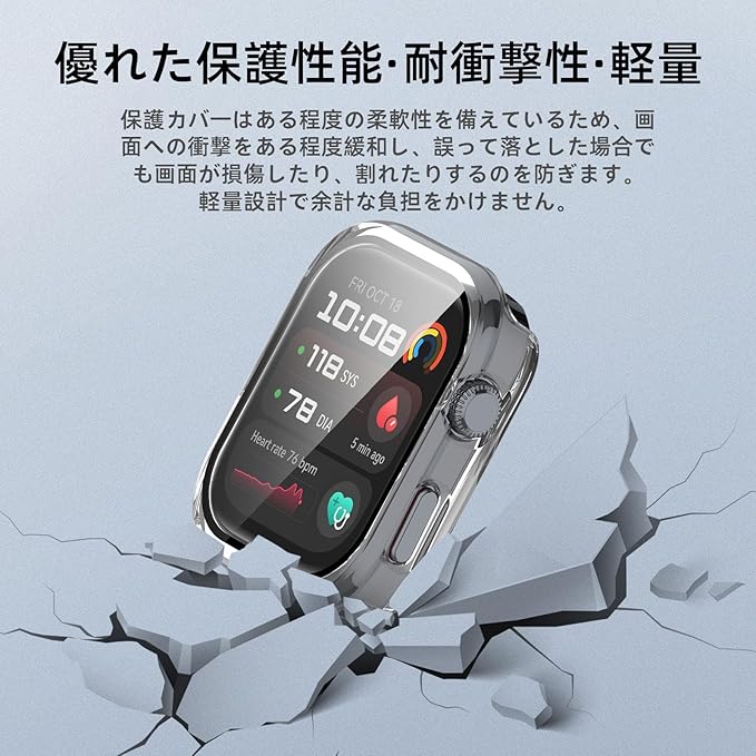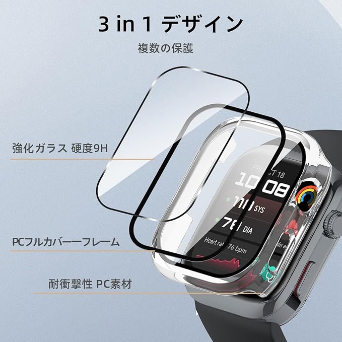 【高品質素材】耐衝撃性を持つPC+強化ガラスで作られ、HD光透過率硬度9H強化ガラススクリーンプロテクター付きカバーは、Watch を傷、ほこり、衝撃から完全に保護します。汚れや指紋がつきにくい。少し汚れがついていても、水洗いや湿布で拭き取ることができます。