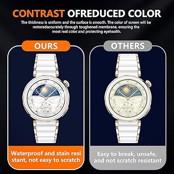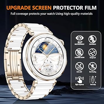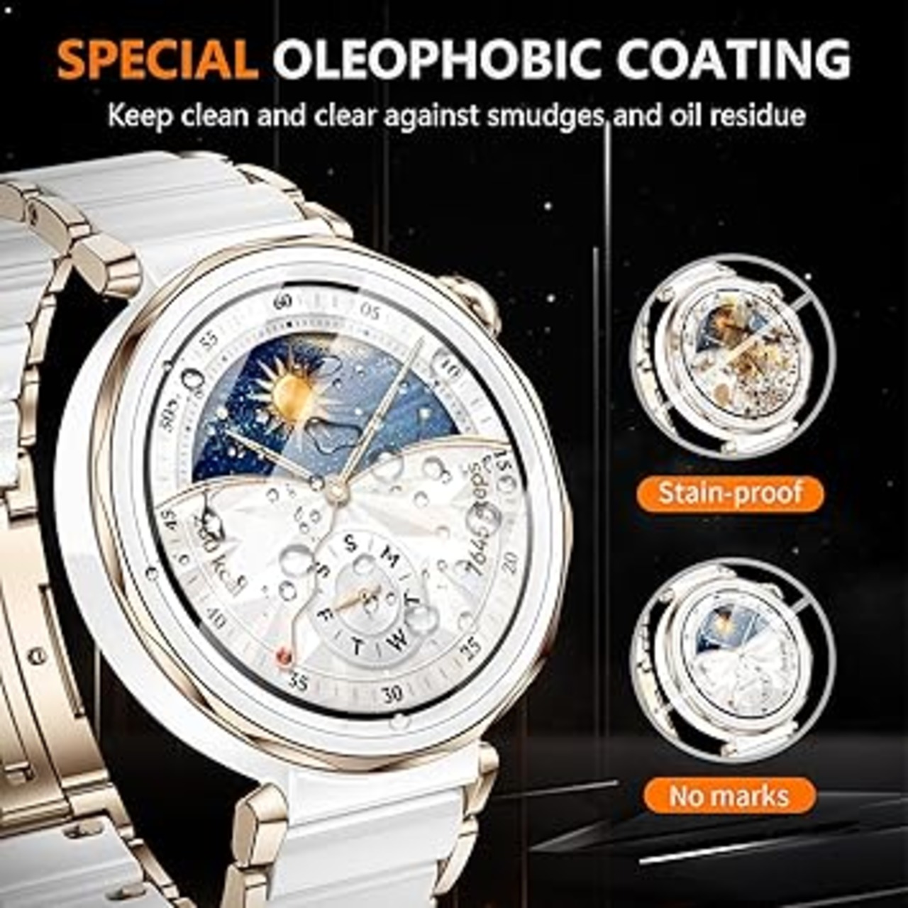 HD &高感度:For Huawei Watch GT5 Pro 42mm保護フィルムは高精細かつ高透過率で、腕時計の画面を保護しながら高画質のオリジナル画質を提供します。疎水性スクリーンコーティングが時計のスクリーンを水汚れから保護し、高感度のタッチレスポンスを維持します