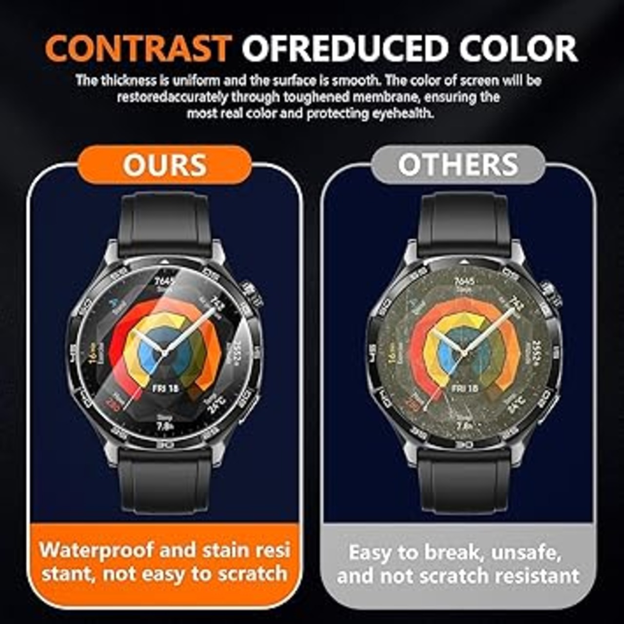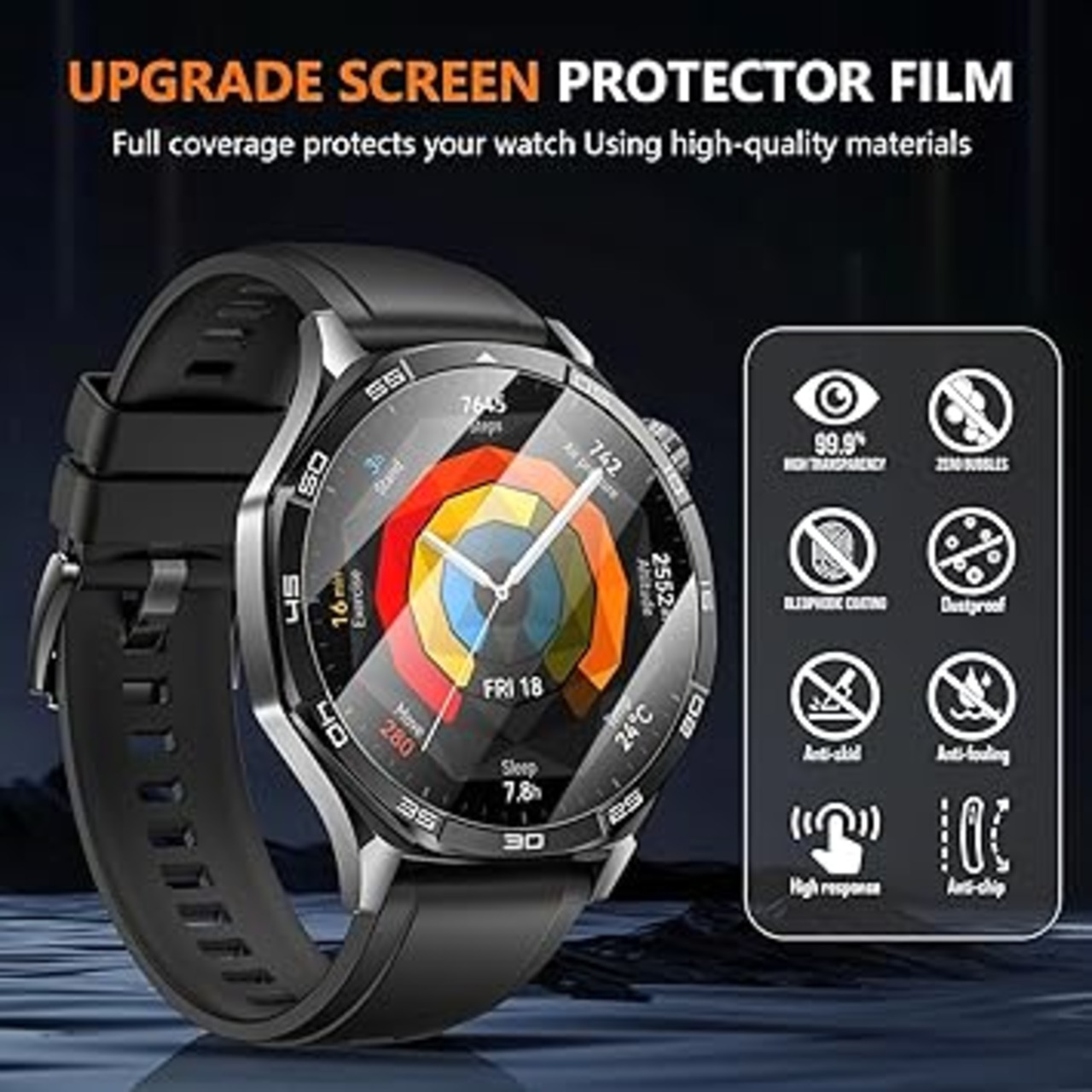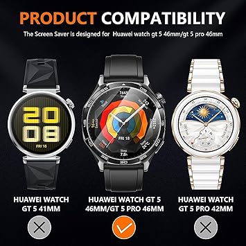 HD &高感度:For Huawei Watch GT5 Pro/GT5/GT4 46mm保護フィルムは高精細かつ高透過率で、腕時計の画面を保護しながら高画質のオリジナル画質を提供します。疎水性スクリーンコーティングが時計のスクリーンを水汚れから保護し、高感度のタッチレスポンスを維持します