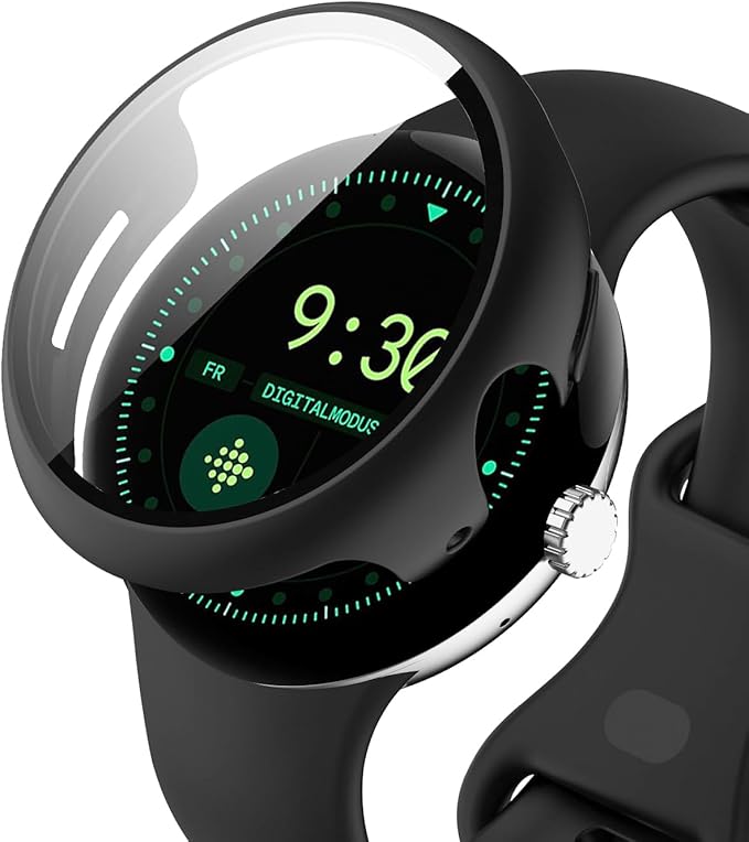 AiMaoo Google Pixel Watch 3 41mm (2024)/Pixel Watch 2/Pixel Watch 対応 ケース 強化ガラスフィルム 保護 カバー 硬質ポリPC素材 一体化 耐衝撃 傷防止 変色防止 全面カバー 全面保護 スマートウォッチ Pixel Watch 3 41mm/Pixel Watch 2/Pixel Watch 用 (ブラック) a