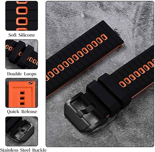 [Anbeer] 時計 ベルト ツートンカラー シリコン 腕時計 替えバンド Quick Release スポーティー ラバー バンド 18mm 20mm 22mm 24mm a