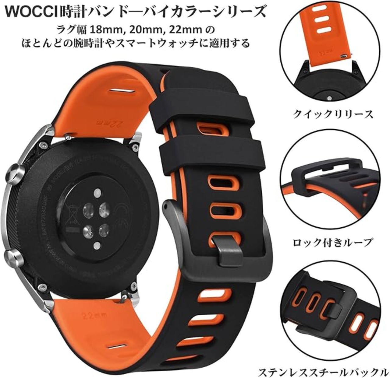 [WOCCI]時計ベルト 18mm 19mm 20mm 21mm 22mm シリコンラバー腕時計バンド Quick Release バイカラー ゴム替えベルト