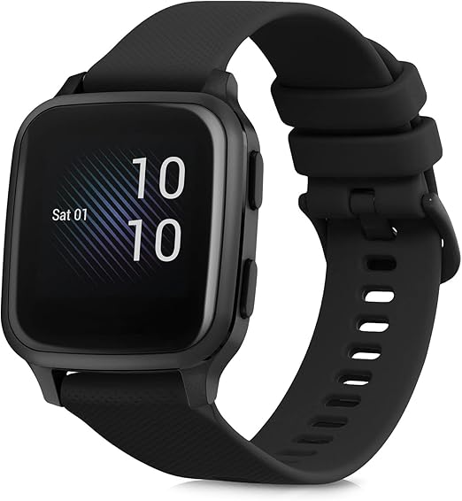 kwmobile 交換ベルト Garmin Venu Sq Music/Sq対応 バンド - シリコンバンド ソフト TPU 耐久性 黒色 a