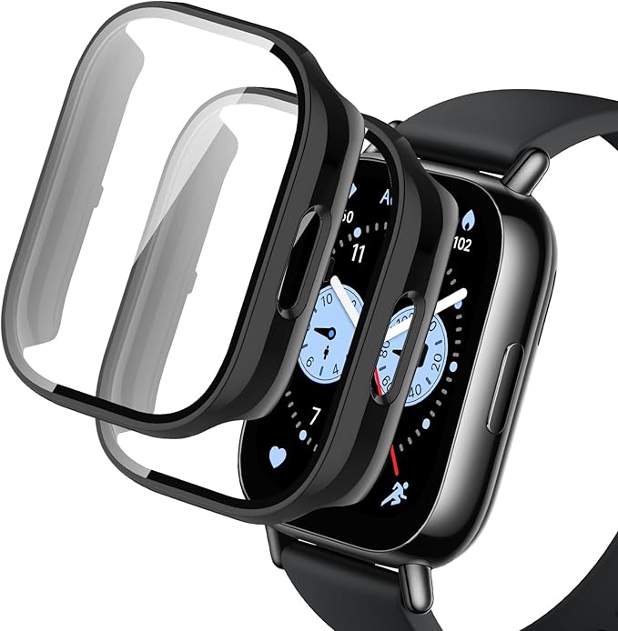 LanQii 用の Xiaomi Redmi Watch 5 Lite ケース 2個セット カバー 用の Xiaomi Redmi Watch 5 Lite スマートウォッチ 保護ケース ガラスフィルム 高級素材 一体型カバー キズ防止 軽量 全面保護 二重構造 超薄型 装着簡単 耐衝撃 指紋防止 用の Redmi Watch 5 Lite 保護 ケース ブラック & ブラック a