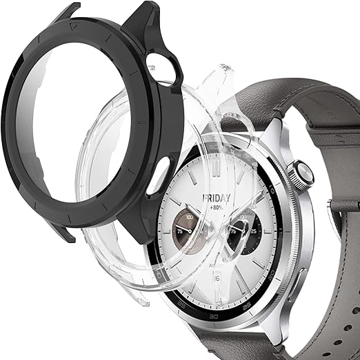 【2枚セット】For Xiaomi Watch S4 ケース ガラスフィルム+PCフレーム 一体型 保護フィルム Greerass 全面保護ケース 高透過率 全面保護 耐衝撃 指紋防止 撥水撥油 防水防塵 装着簡単 Xiaomi Watch S4 用 フイルム一体型ケース (ブラック+クリア) a
