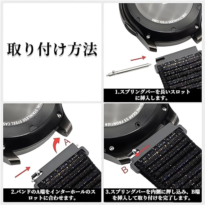 [YINKE] スマートウォッチ 時計 ベルト 22mm パラシュートスタイルバックル スマートウォッチ バンド ナイロン 伸縮性ベルト 無段階調整 金属バックル ナイロン 編み込み スポーツ 男女兼用 通気性 柔軟性 弾力性 a