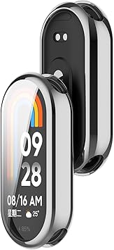 RUIIOCVKK for シャオミ Xiaomi Smart Band 10 ケース スマートウォッチ 全面保護 TPU メッキ 脱着簡単 タッチ感度いい 耐衝撃性 落下防止 Xiaomi Smart Band10 Standard Edition 保護カバー (シルバー+クリア) a
