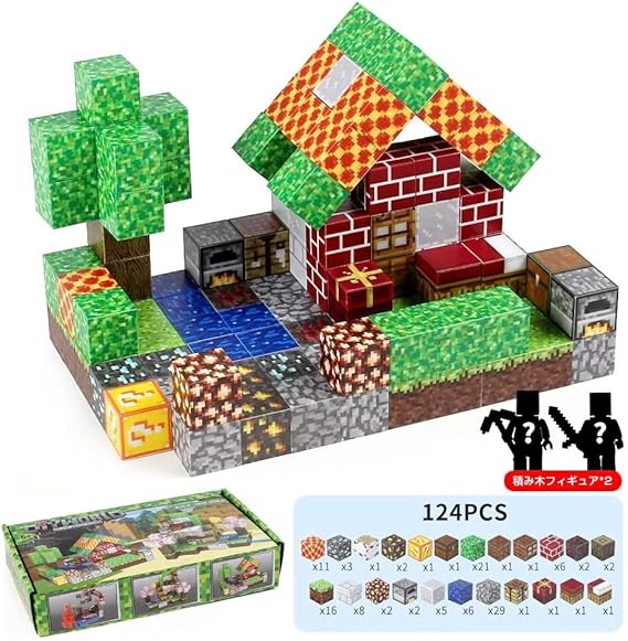 Vexolite マグネットブロック マイクラ風 磁石ブロック 立体パズル 知育玩具 マグネットパズル 小学生 おもちゃ 誕生日 入園 卒園 ギフト クリスマスプレゼント 2.3cm (124PCS 森林の別荘) a